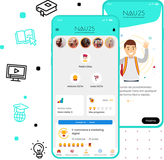 Após adquirir o curso, você pode estudar no aplicativo NAU25